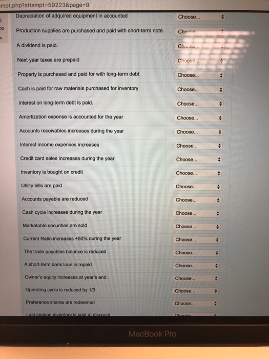 Real estate is purchased and paid for with shortterm debt. B Property is purchased and paid for with short-term debt. Inventory is bought on credit.